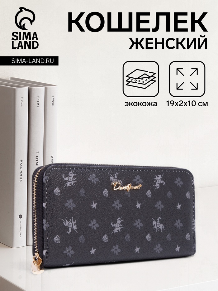 Качественная искусственная кожа с узором сохраняет безупречный вид при регулярном использовании. Удобный ремешок позволяет носить кошелёк как самостоятельный аксессуар. Вместительный формат подходит для хранения всех необходимых вещей без лишнего объёма.