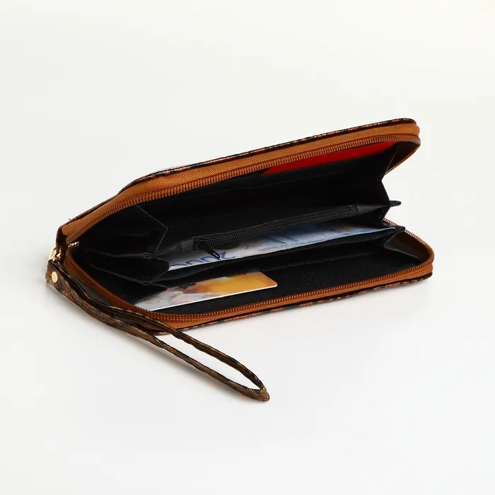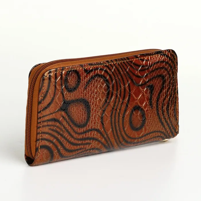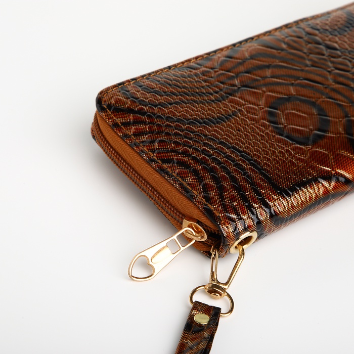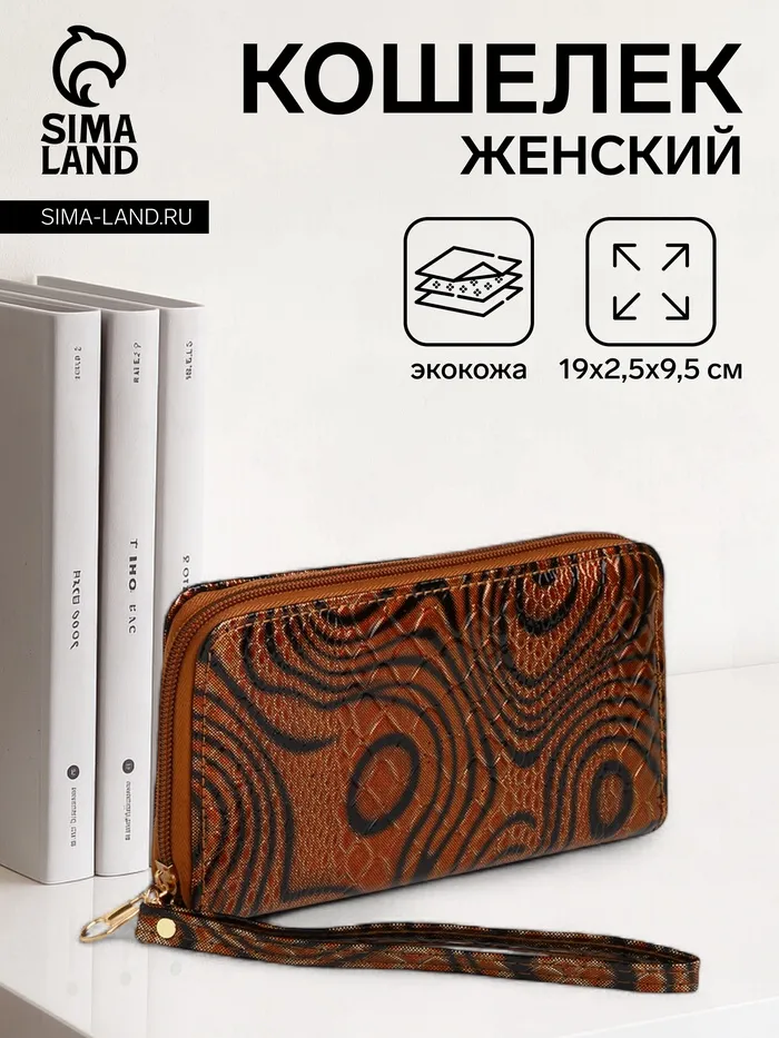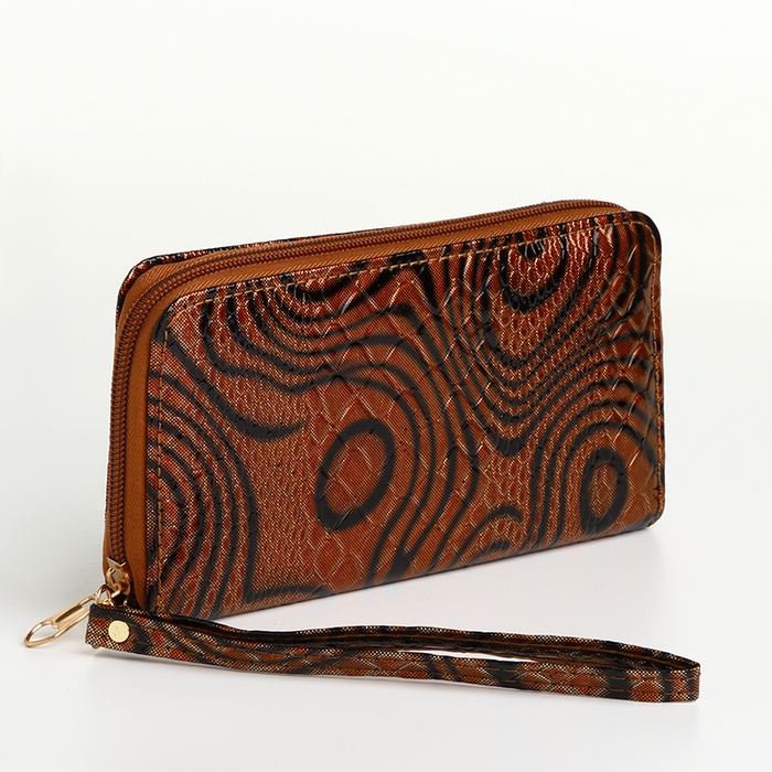 Кошелёк женский на молнии с ремешком, 19×2.5×9.5 см, с абстрактным принтом, коричневый — Характеристики