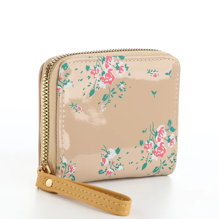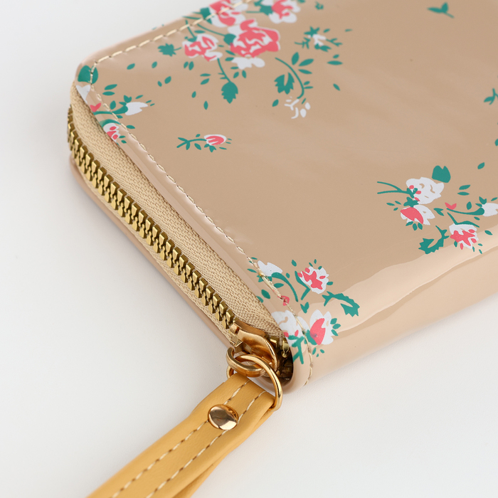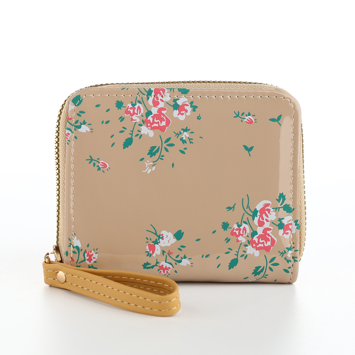 Кошелёк женский на молнии с ремешком, лакированный, цвет бежевый — Характеристики