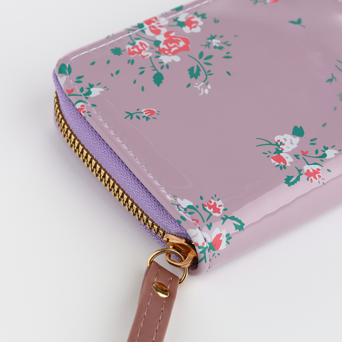 Кошелёк женский на молнии с ремешком, лакированный, цвет сиреневый — Характеристики