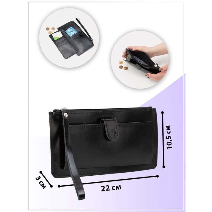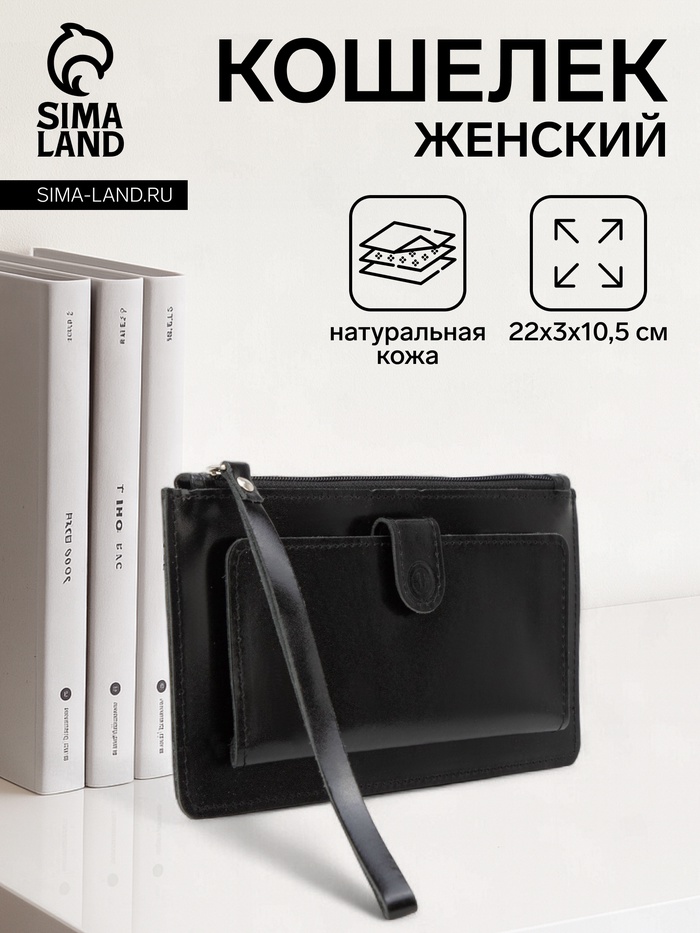 Кошелёк женский на молнии с ремешком TEXTURA, цвет чёрный — Характеристики