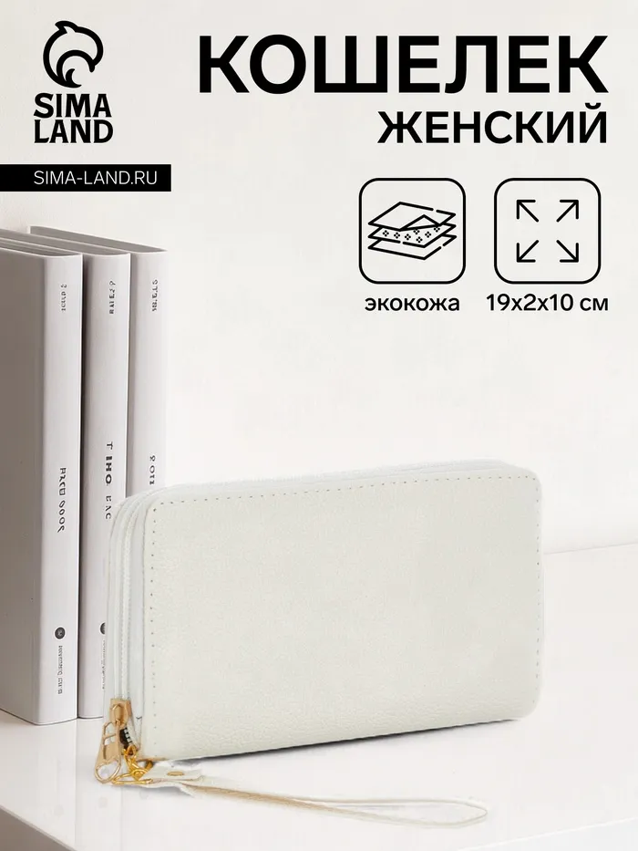 Кошелёк женский на молнии с ремешком, цвет белый — Характеристики