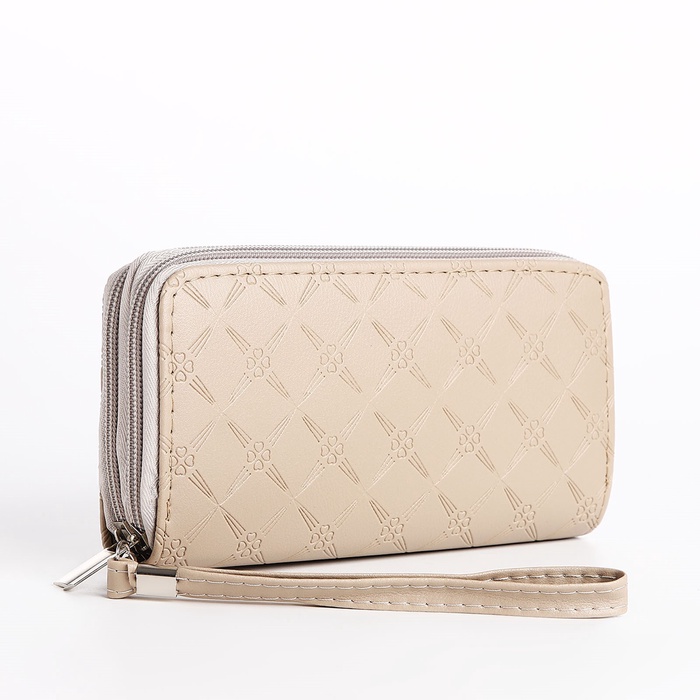 Кошелёк женский на молнии с ремешком, цвет бежевый — Характеристики