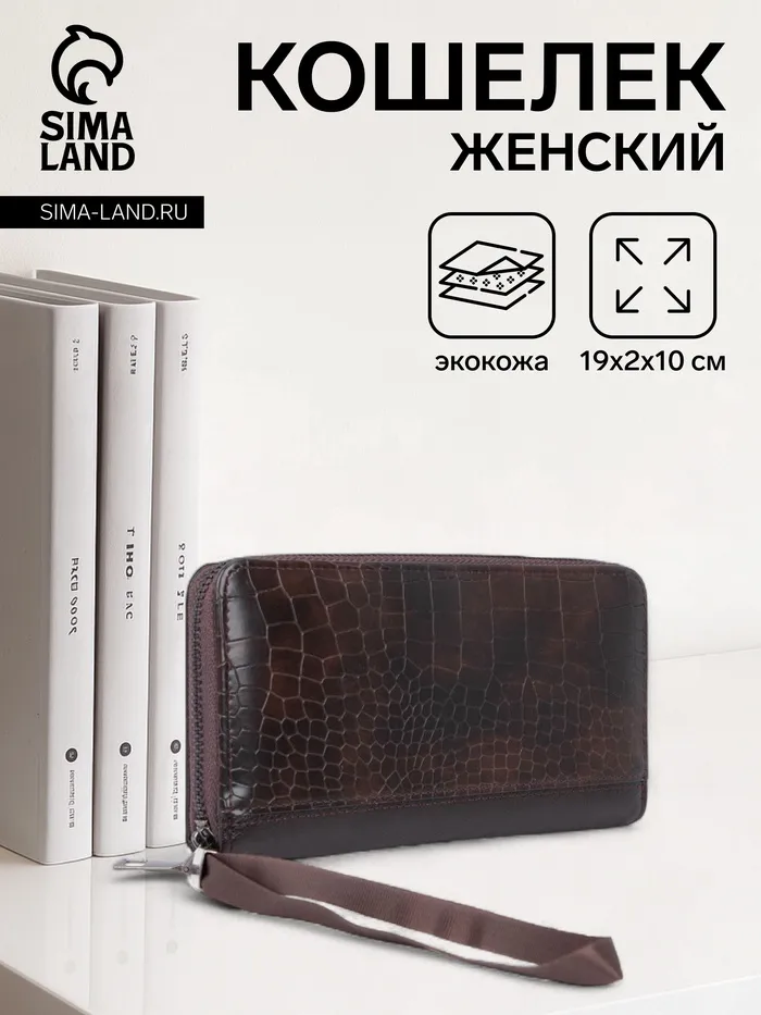 Кошелёк женский на молнии с ремешком, цвет коричневый — Характеристики