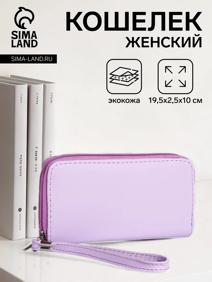 Кошелёк женский на молнии с ремешком, цвет сиреневый — Характеристики