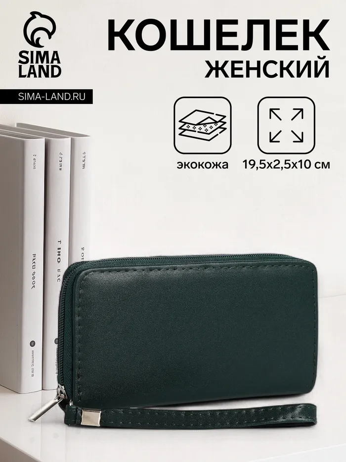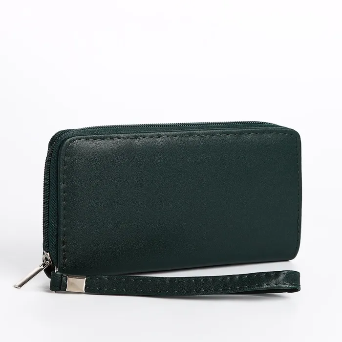 Кошелёк женский на молнии с ремешком, цвет зелёный — Характеристики
