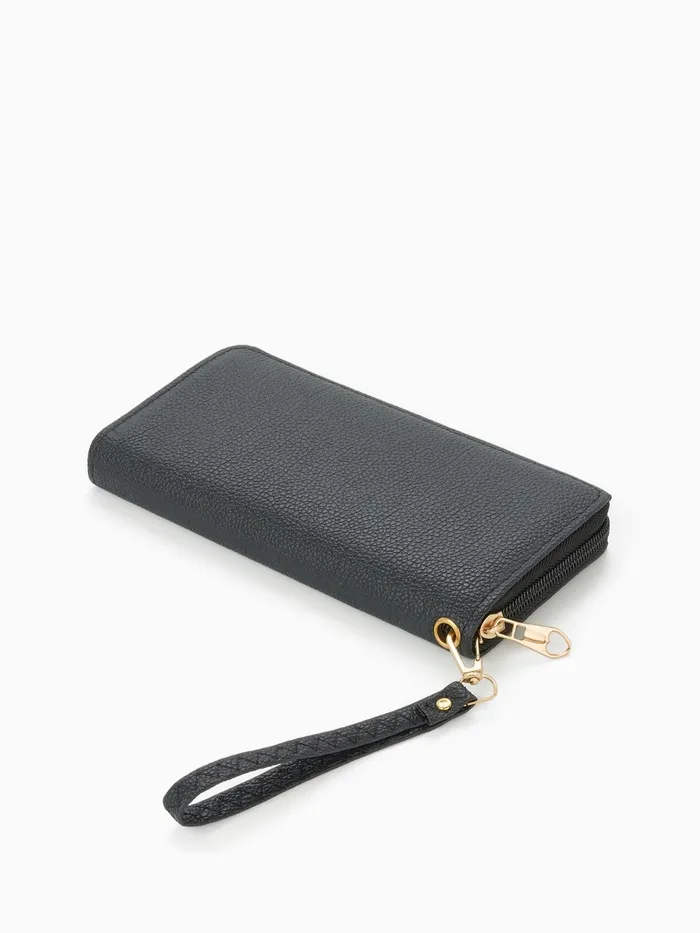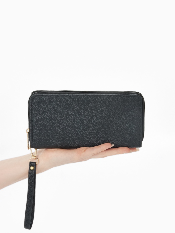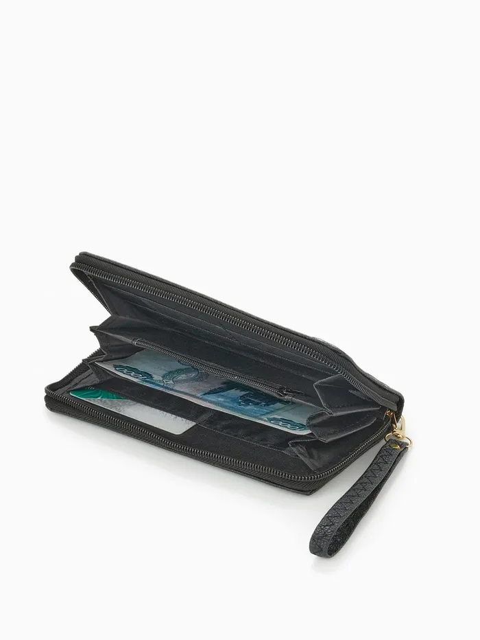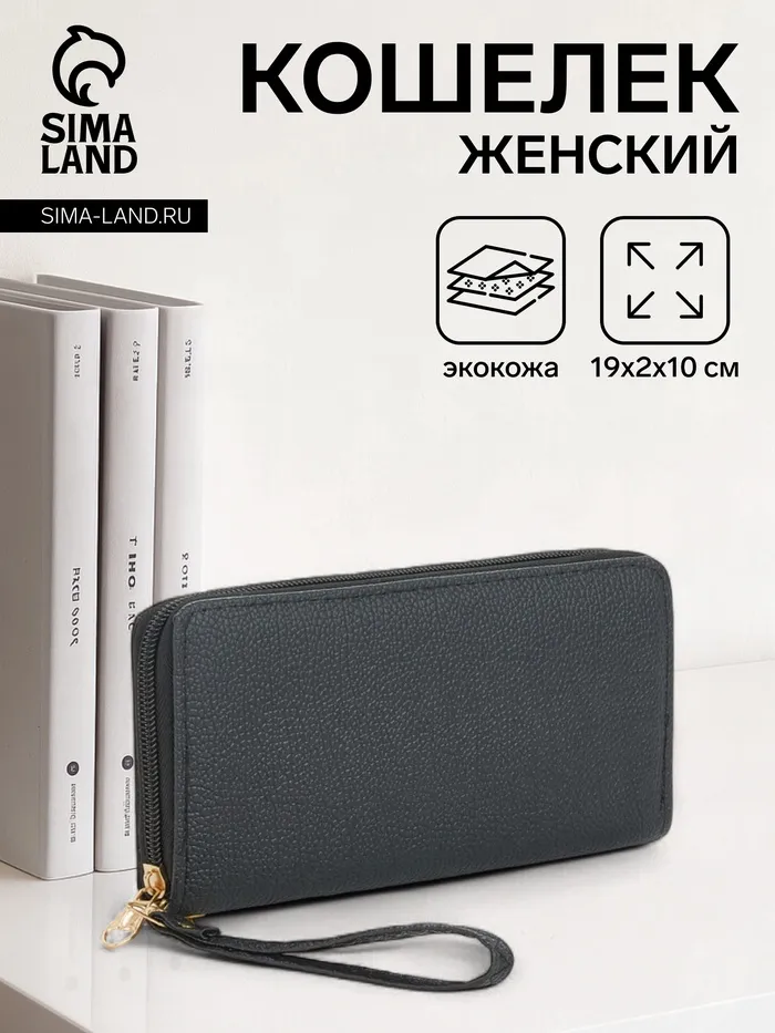 Кошелёк женский на молнии с ручкой, 19×2×10 см, чёрный — Характеристики