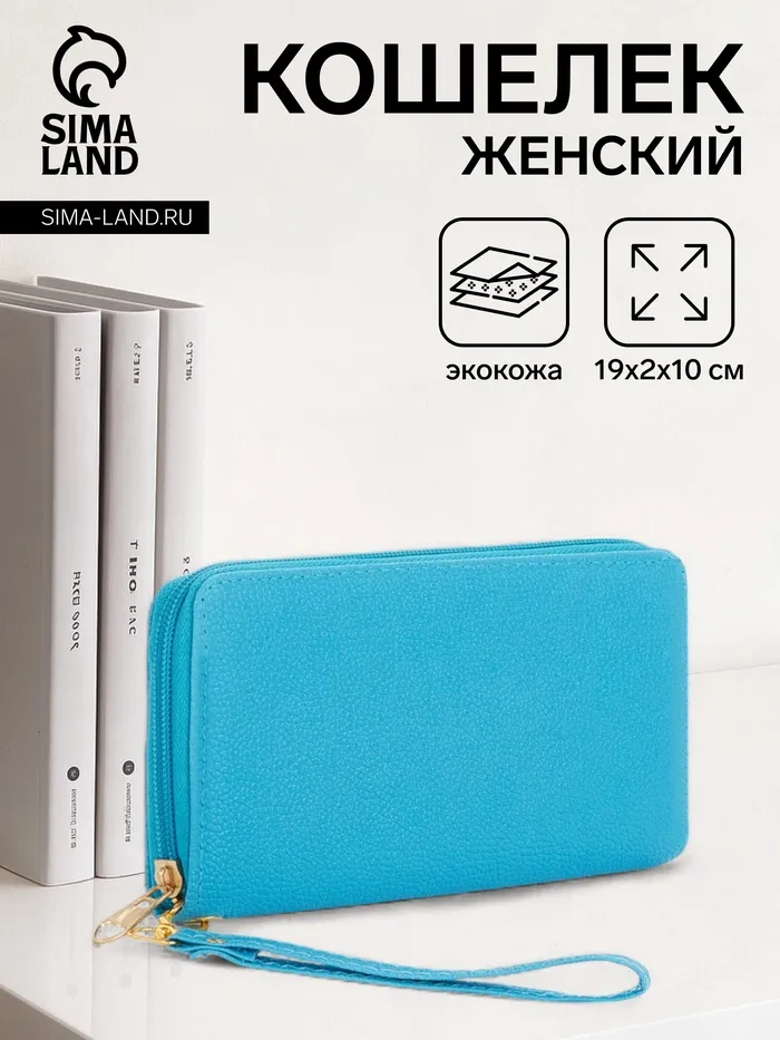 Кошелёк женский на молнии с ручкой, 19×2×10 см, ярко-голубой — Характеристики