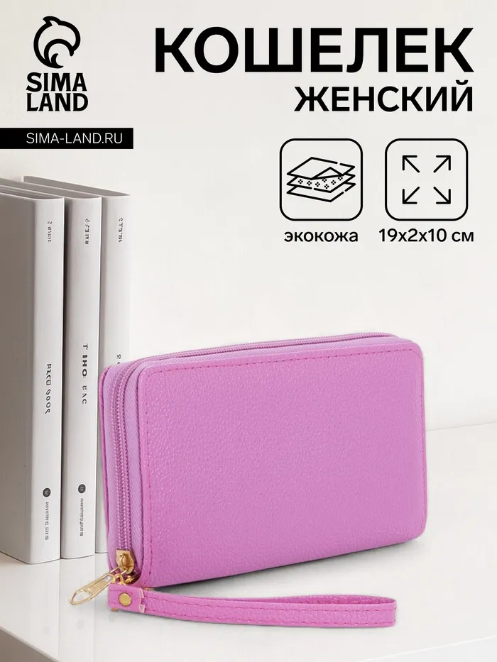 Кошелёк женский на молнии с ручкой, 19×2×10 см, сиреневый — Характеристики