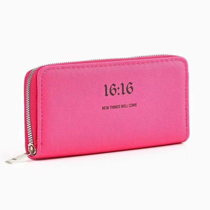 Кошелёк женский на молнии Time, кожзам, розовый — Характеристики