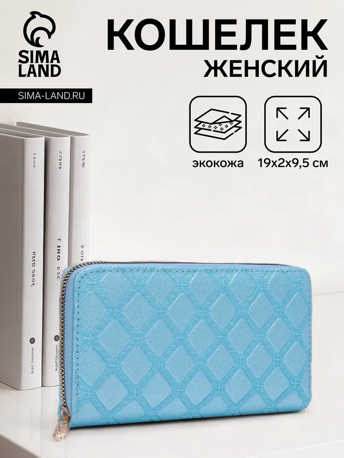 Кошелёк женский на молнии, цвет голубой — Характеристики