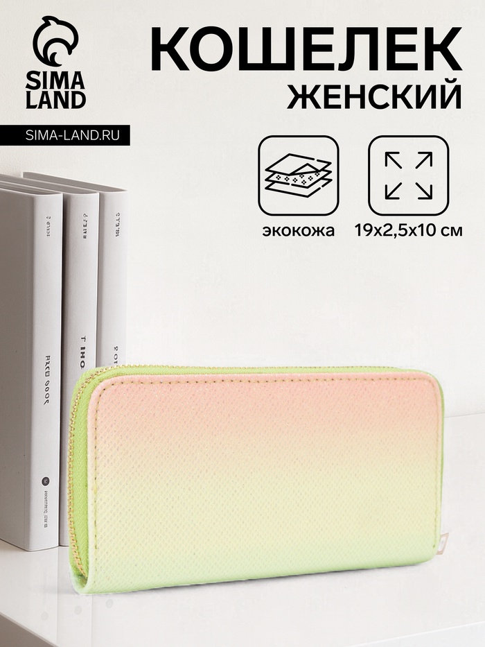 Кошелёк женский на молнии, цвет светло-розовый/жёлтый — Характеристики