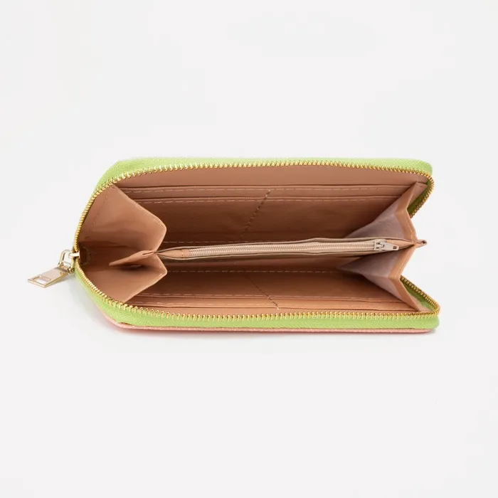 Кошелёк женский на молнии, цвет светло-розовый/жёлтый