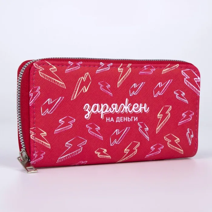 Кошелёк женский на молнии «Заряжен на деньги», розовый — Характеристики