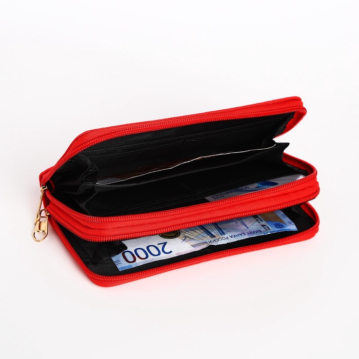 Кошелёк женский на молниях 19.5×4×9.5 см, однотонный, красный