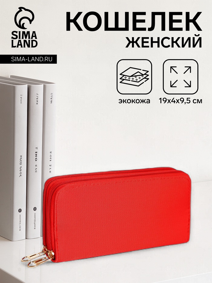 Кошелёк женский на молниях 19.5×4×9.5 см, однотонный, красный — Характеристики