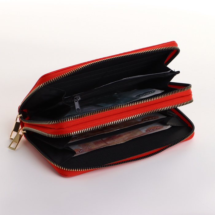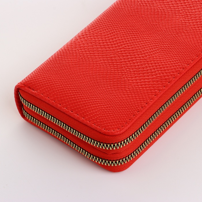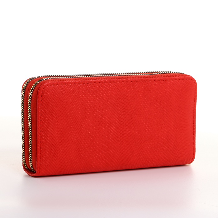 Кошелёк женский на молниях, 19×4×10.5 см, текстурный, красный — Характеристики