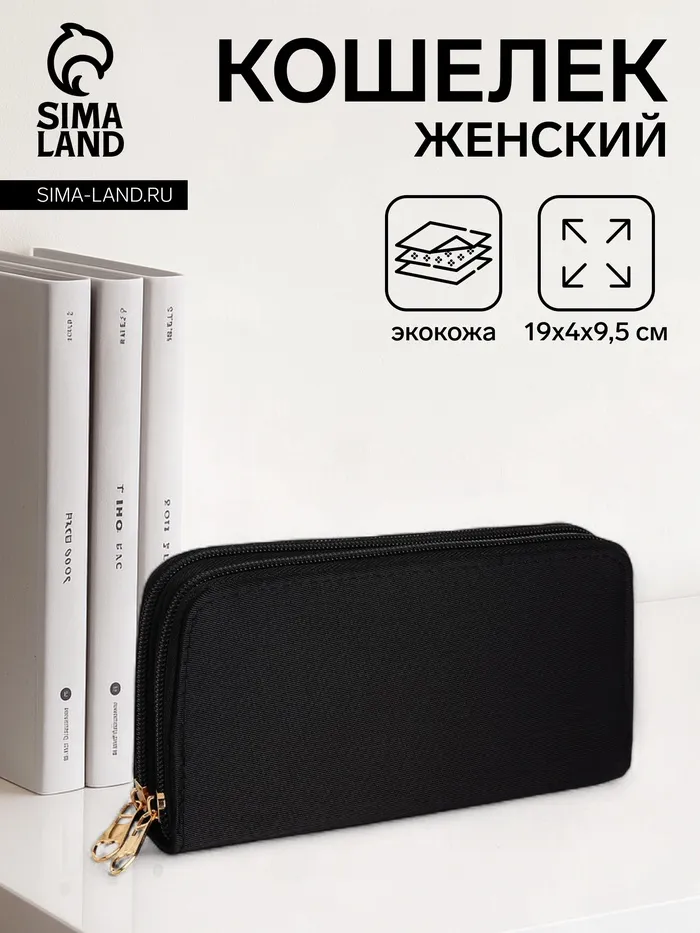 Кошелёк женский на молниях 19×4×9.5 см, однотонный, чёрный — Характеристики