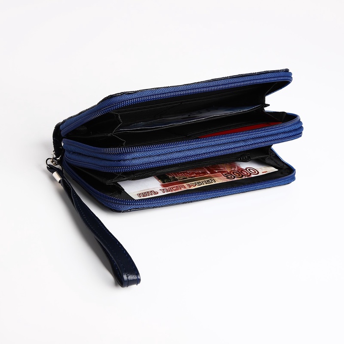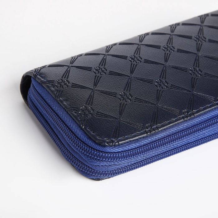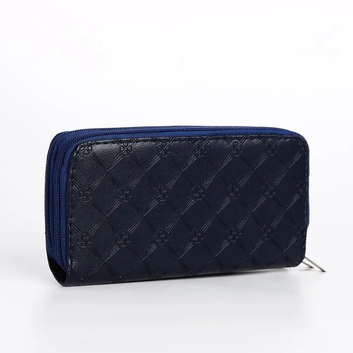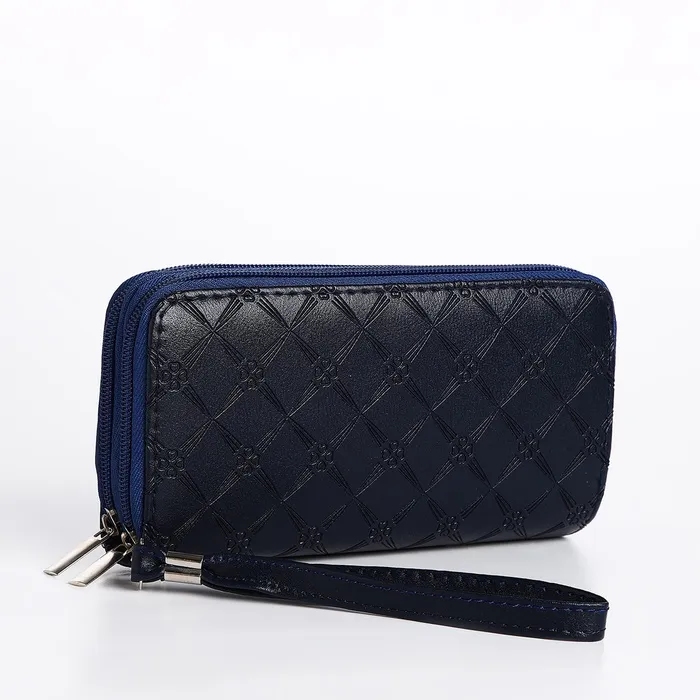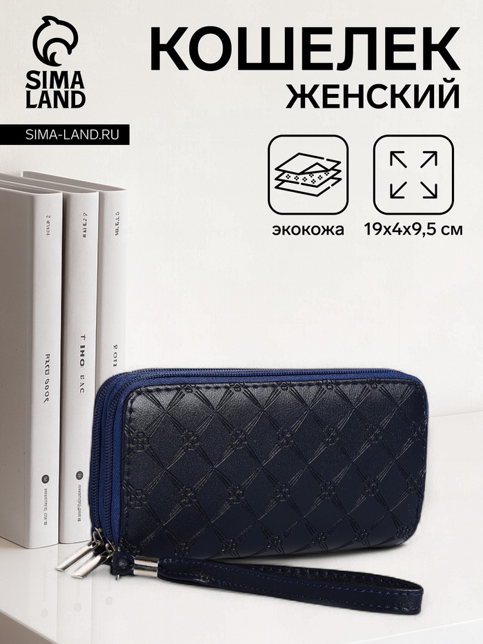 Кошелёк женский на молниях с ремешком, 19.5×4×9.5 см, с тиснением, тёмно-синий — Характеристики