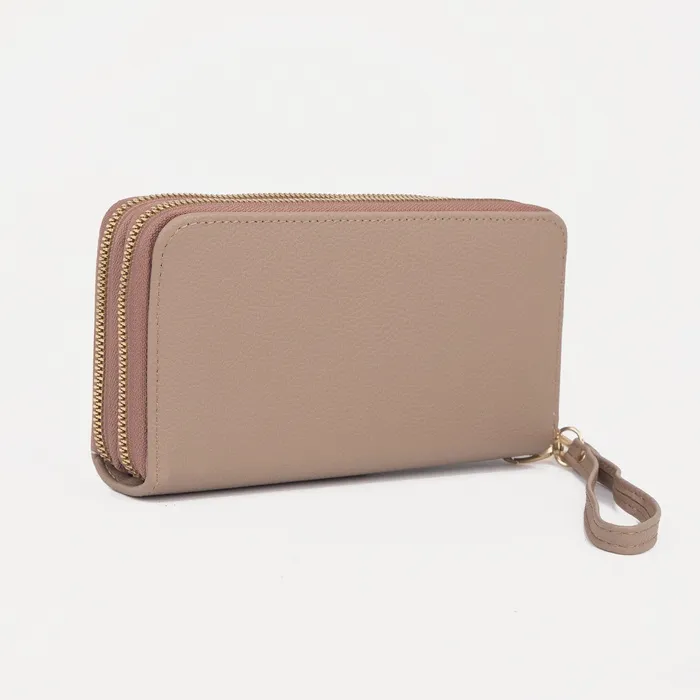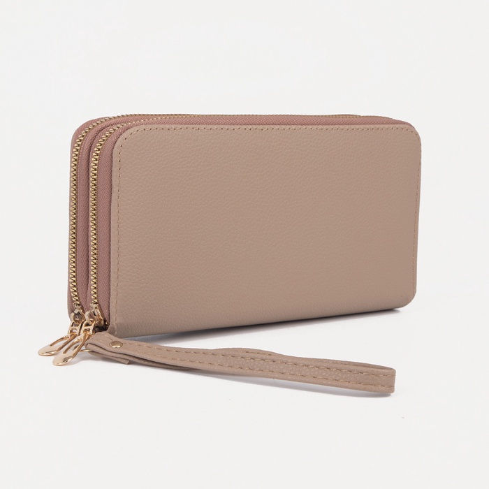 Кошелёк женский на молниях с ремешком, цвет бежевый — Характеристики