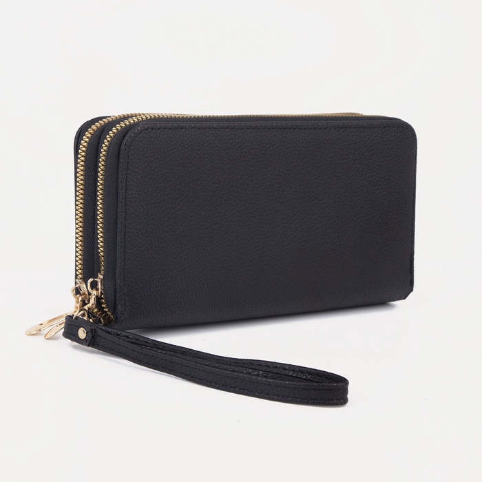 Кошелёк женский на молниях с ремешком, цвет чёрный — Характеристики
