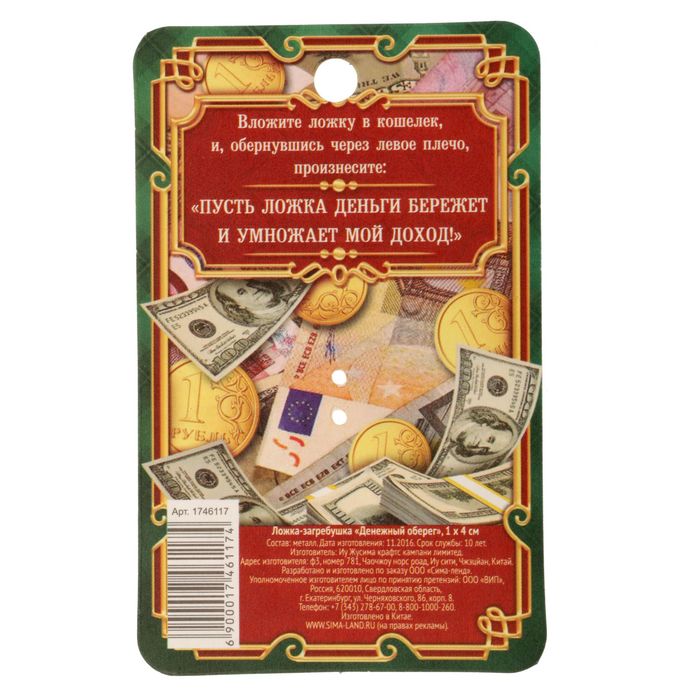 Кошельковый талисман: ложка загребушка «Денежный оберег», 4 х 0,5 см. — Характеристики
