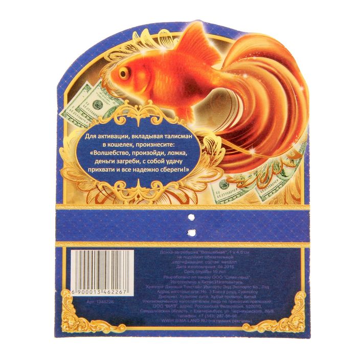 В финансовых вопросах нет незначительных деталей, поэтому специально для вас мы создали серию оберегов, которые привлекут благополучие. Кошельковый талисман, ложка загребушка «Волшебная», 4.5×1 см — изделие, которое будет защищать вас и приумножать ваши доходы. Чтобы активировать его, положите сувенир в кошелёк или сумочку и произнесите несложный заговор, указанный на упаковке.
