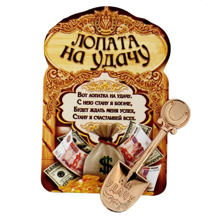 Для активации положите лопатку в кошелёк, приговаривая: «Лопатка, счастье загребай, меня удачей наделяй». Металлический сувенир весом всего 2 г преподносится на эксклюзивной дизайнерской подложке в пакете с европетлёй.