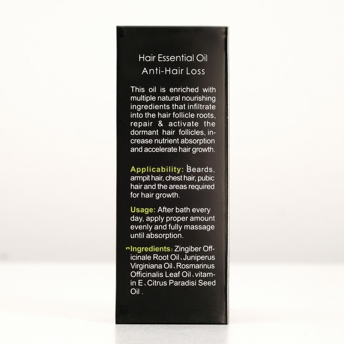 Масло обогащено множеством натуральных питательных веществ, которые проникают внутрь в корней волосяных фолликулов, восстановливая и активируя спящие волосяные фолликулы, ускоряя поглощение питательных веществ и рост волос.
