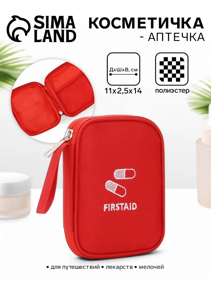 Косметичка-аптечка дорожная на молнии, с ручкой, Firstaid, красный — Характеристики