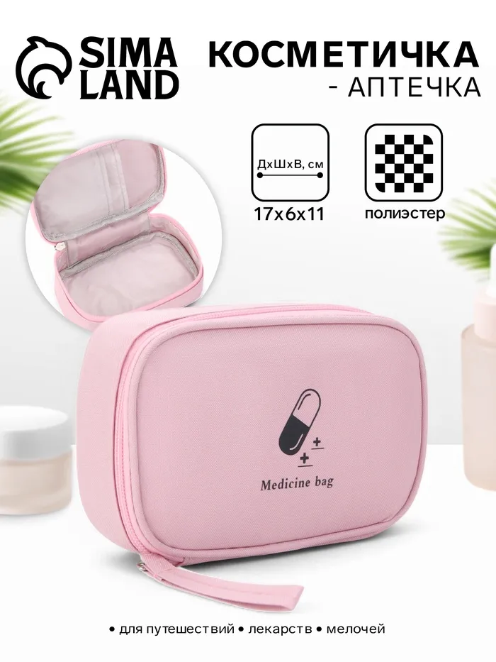 Косметичка-аптечка дорожная на молнии, с ручкой, розовая — Характеристики