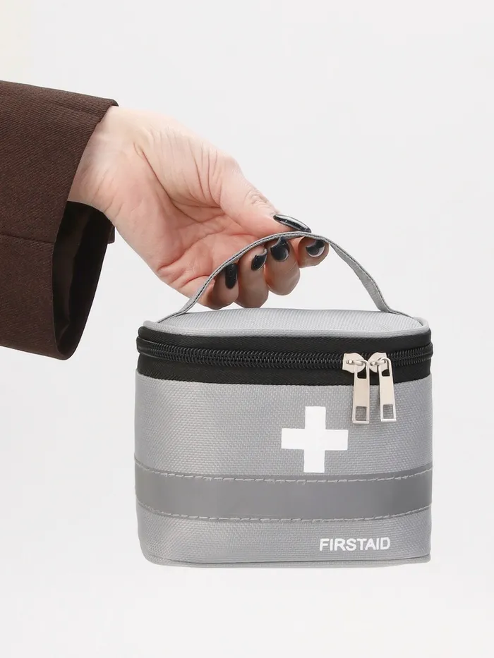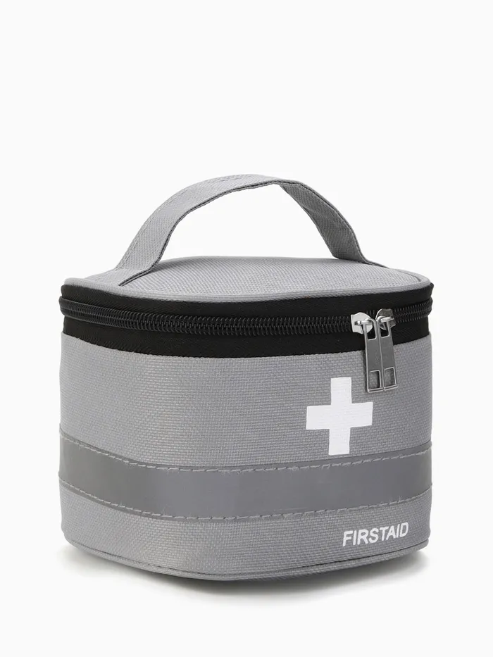 Косметичка-аптечка на молнии, на подкладке, с ручкой, с принтом, серая — Характеристики