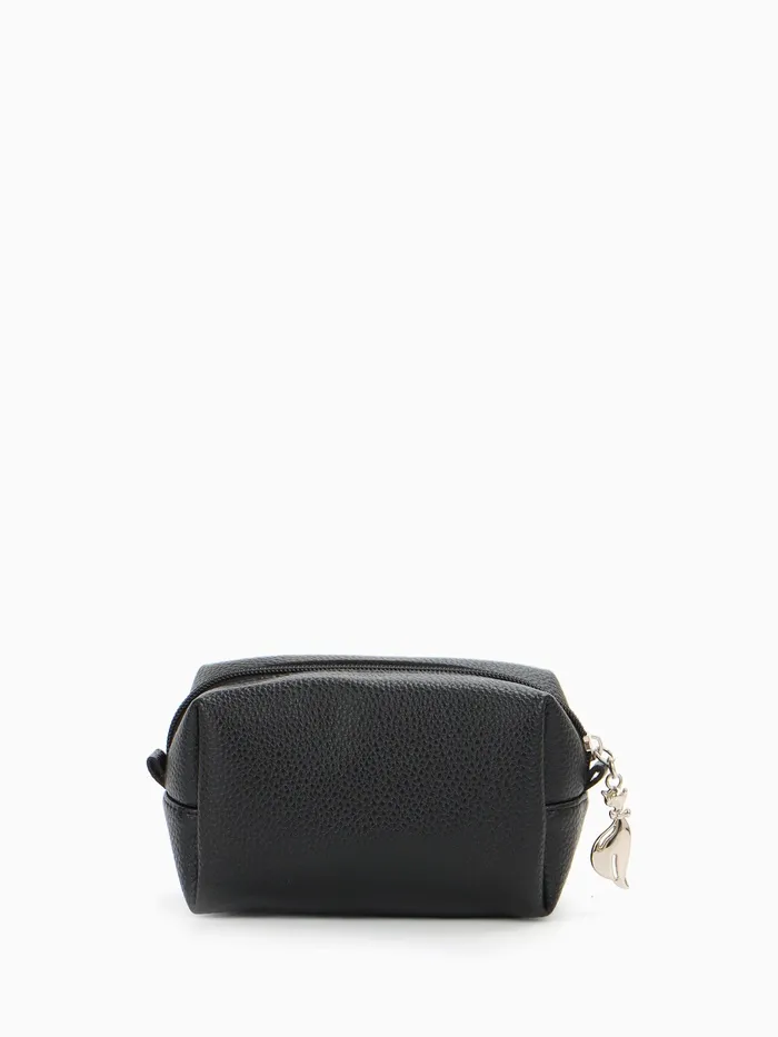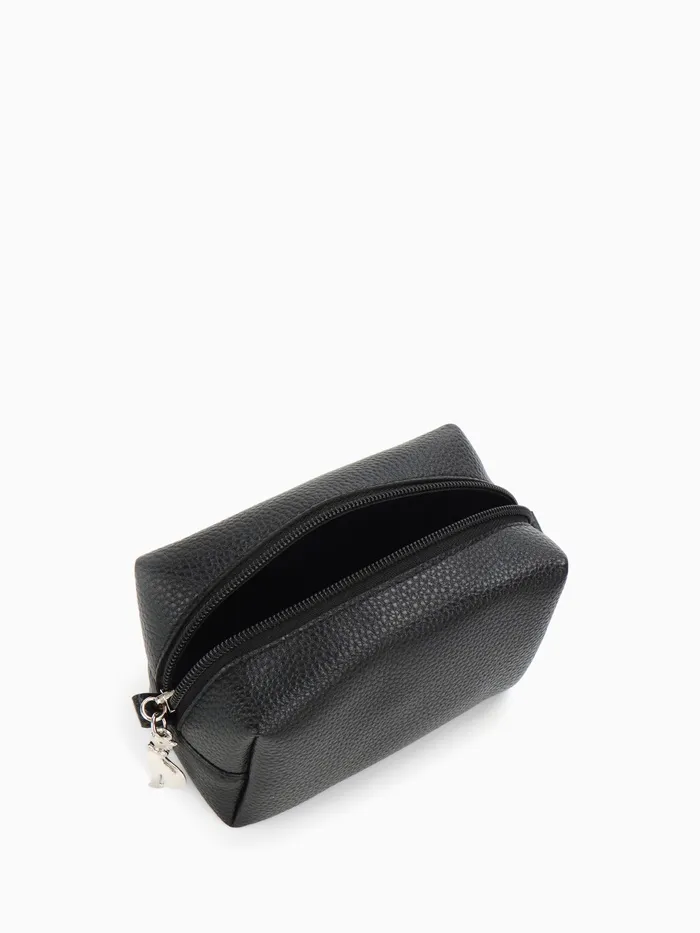 Черная косметичка на молнии — идеальный спутник для современных женщин, которые ценят стиль и функциональность в каждом аксессуаре. Прочная прессованная кожа и компактные размеры делают эту косметичку отличным решением для хранения ваших любимых бьюти-продуктов. Такая „малышка“ с легкостью умещается в любую сумочку, оставаясь при этом вместительной благодаря оптимальным пропорциям.
