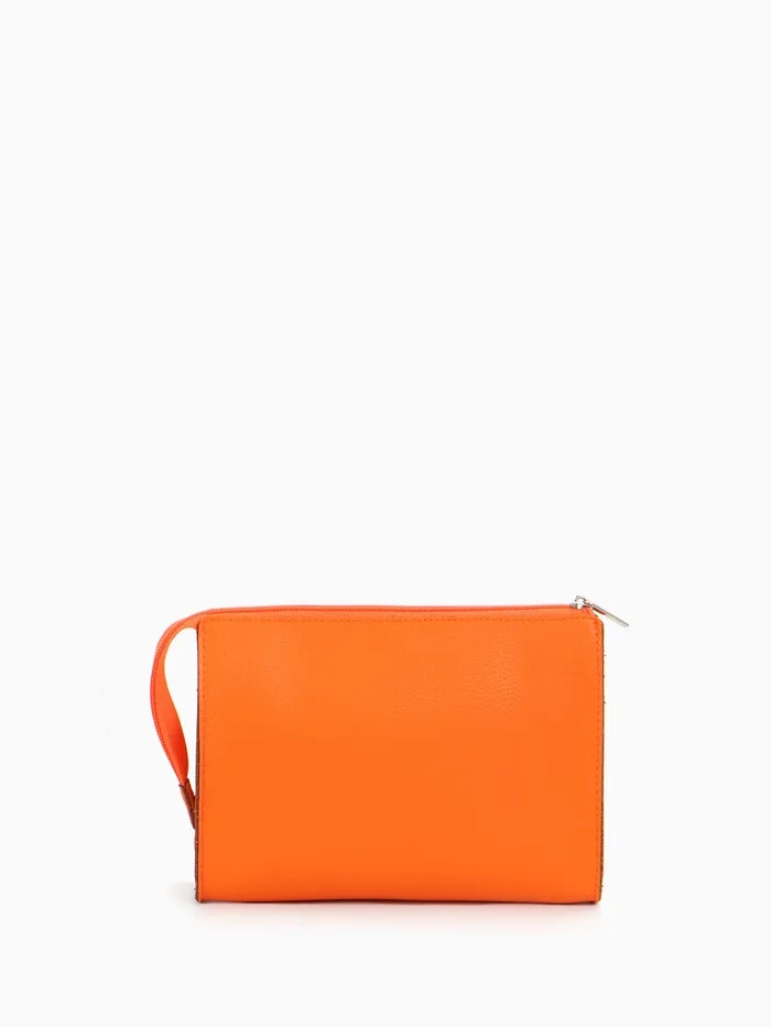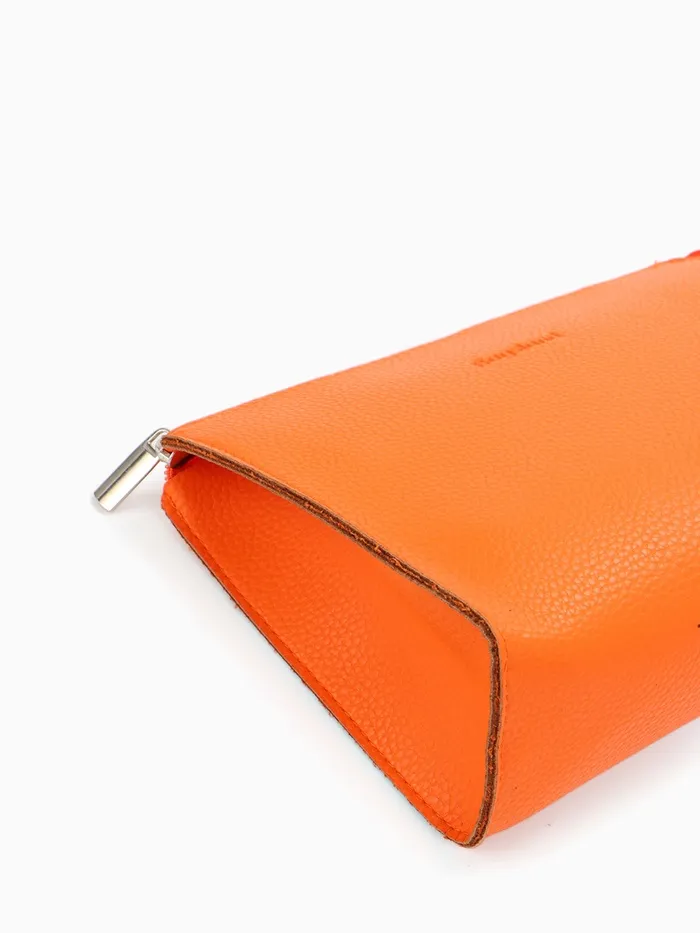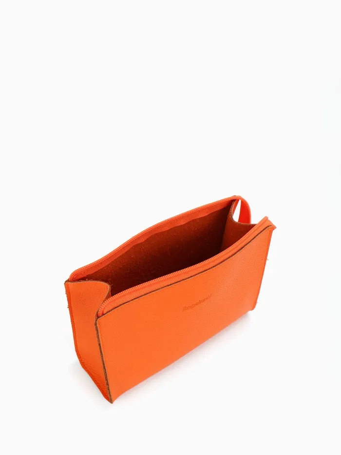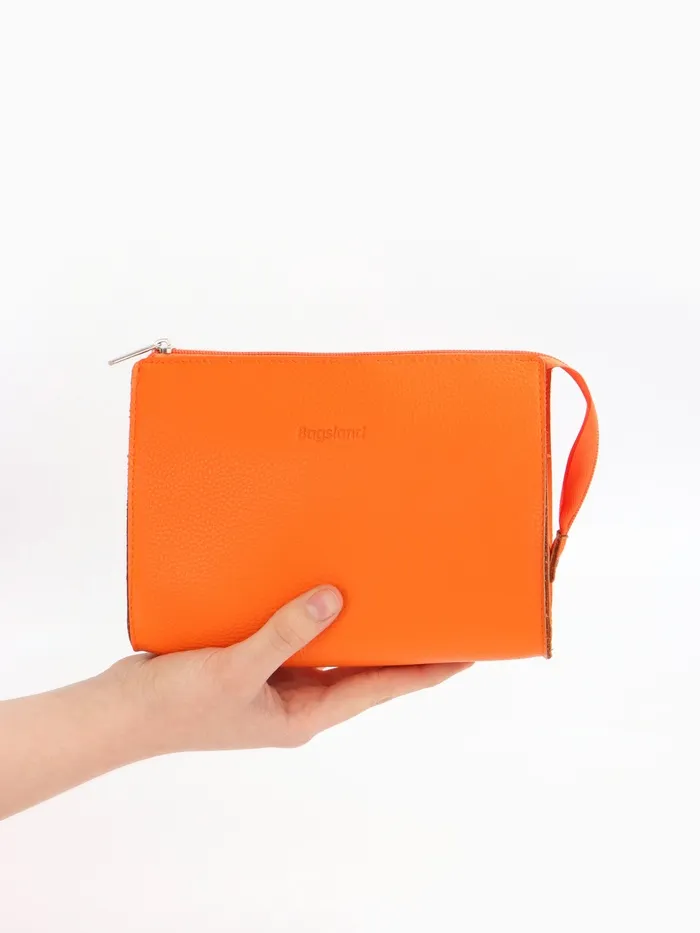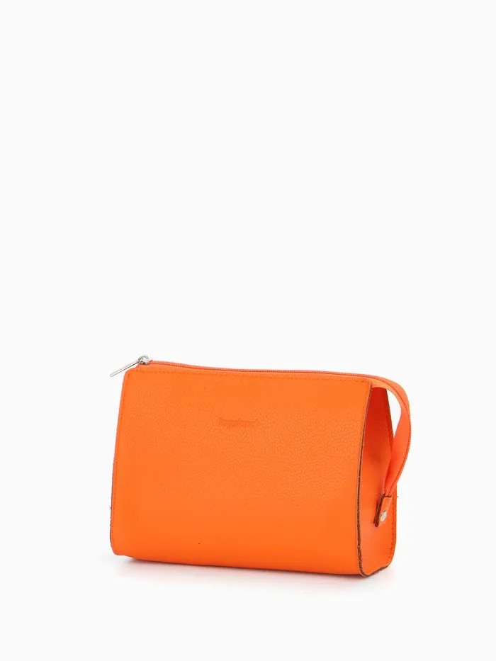 Сумочка для косметики в ярком оранжевом цвете станет идеальным спутником для каждой женщины. Она достаточно компактна, чтобы легко уместиться в повседневной сумке, а материал из прессованной кожи обеспечивает прочность и современный стиль. С удобной застёжкой-молнией все ваши косметические средства будут в безопасности, а однотонная палитра подойдёт к любому образу.