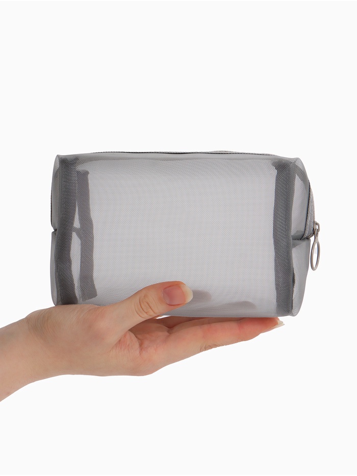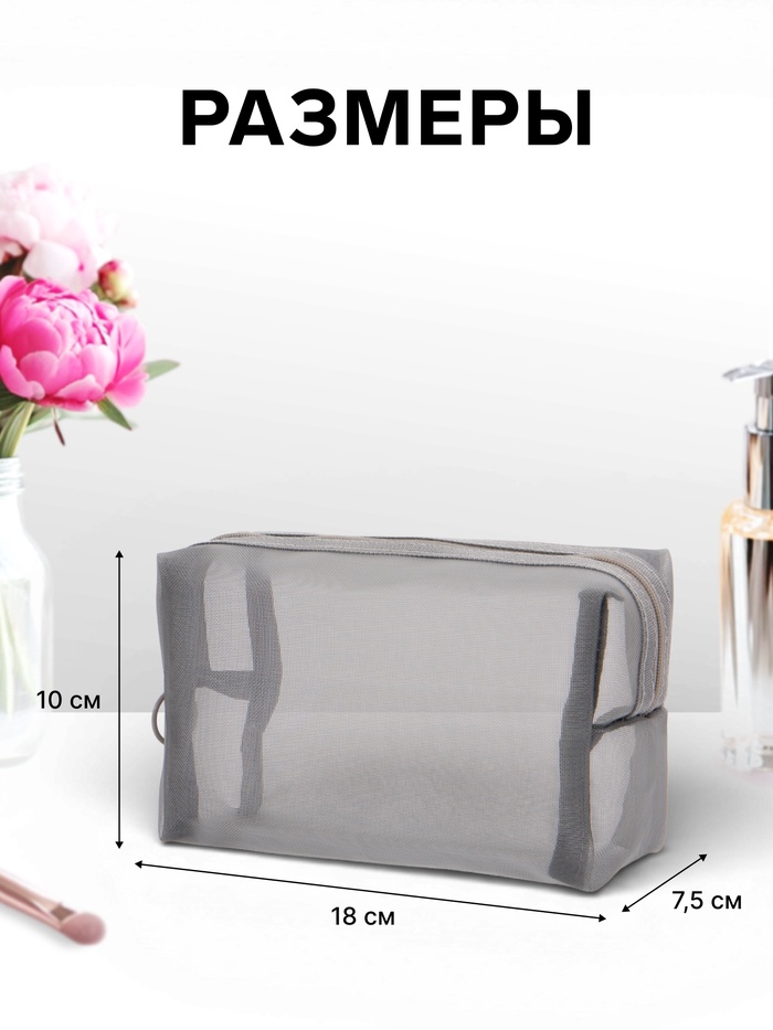 Эта стильная сетчатая косметичка станет незаменимой спутницей любой леди. Благодаря своему маленькому размеру она идеально помещается в дамскую сумку и удобно хранит все необходимые косметические принадлежности.
