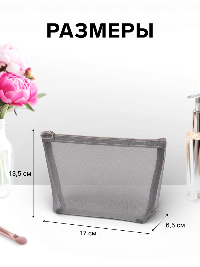 Путешествуйте стильно с сетчатой косметичкой — идеальным аксессуаром для женщин и девочек. Ее лаконичный серый дизайн придаст элегантности вашей ежедневной рутине, а компактный размер (17x13,5x6,5 см) позволяет легко носить её в сумке или рюкзаке.