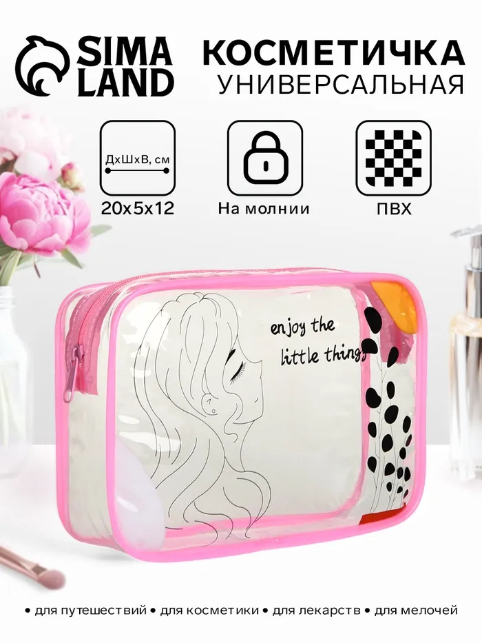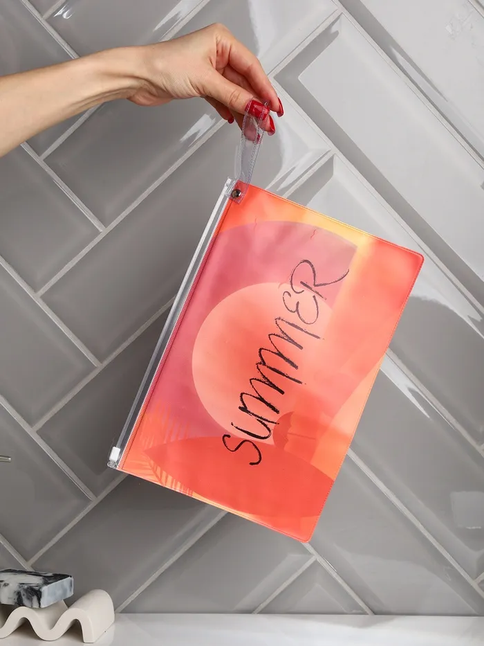 Косметичка для бассейна с застёжка зип-лок, большая, с принтом, прозрачная/оранжевая — Характеристики
