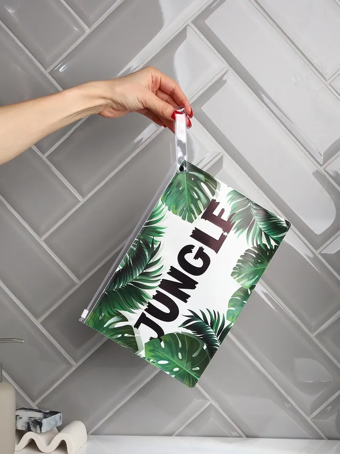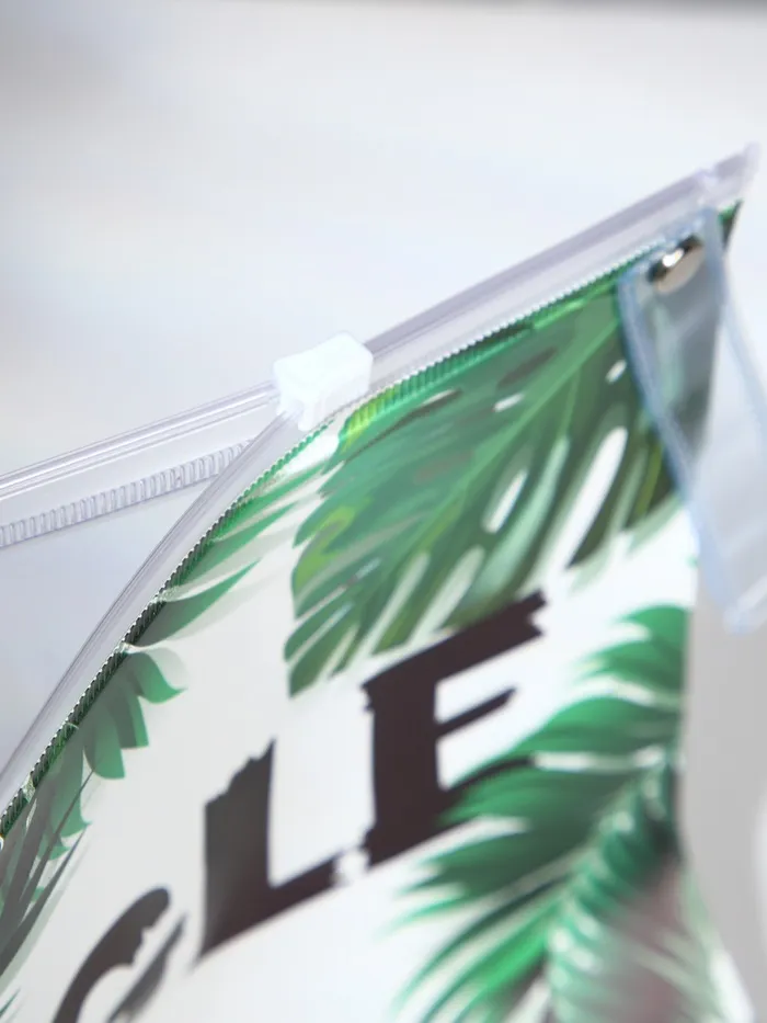 Косметичка для бассейна с застёжка зип-лок, большая, с принтом, прозрачная/зелёная — Характеристики