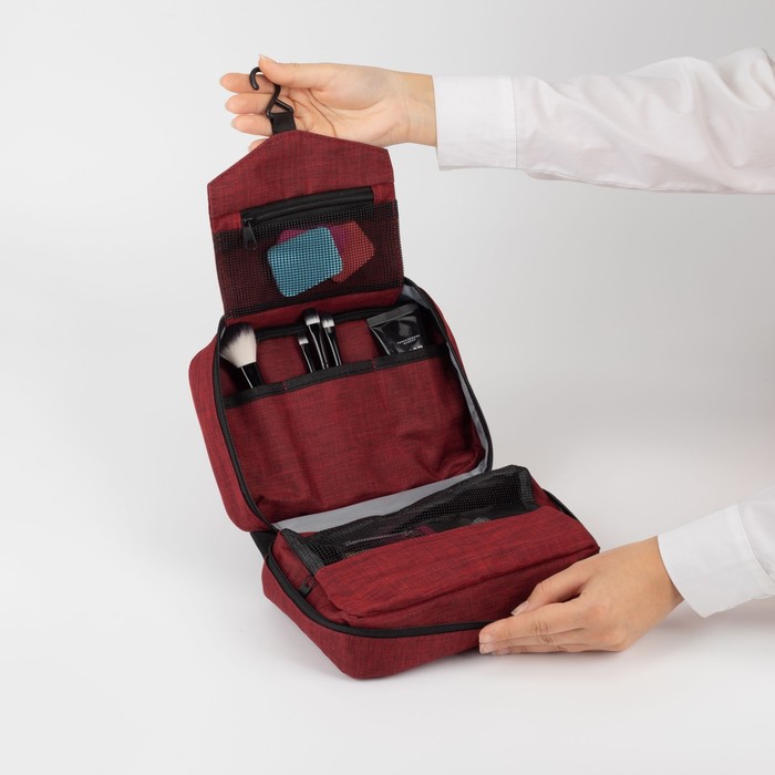 Косметичка дорожная, 2 отдела на молниях, цвет красный — Характеристики