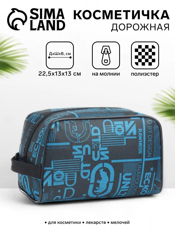 Косметичка дорожная на молнии «Бако текстиль», с ручкой, цвет синий — Характеристики