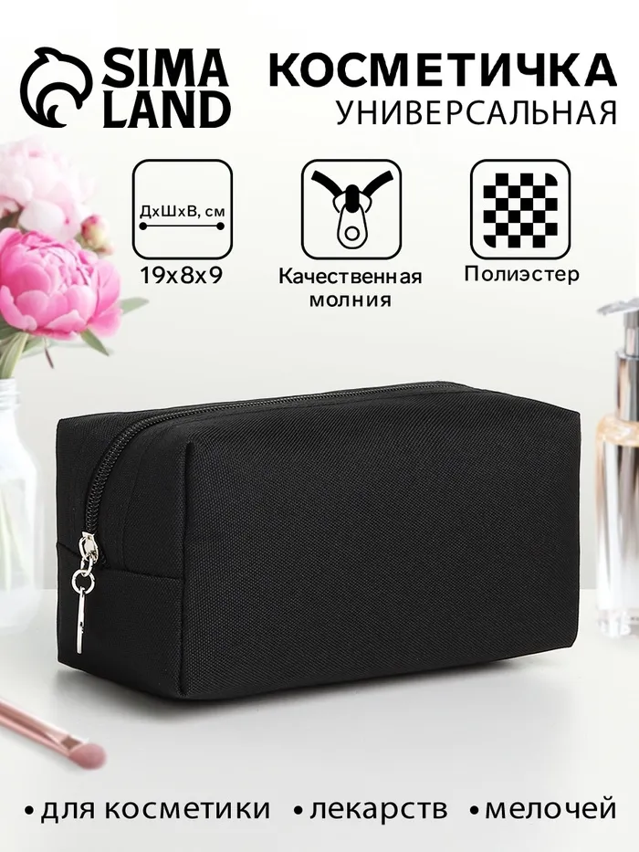 Косметичка дорожная на молнии, объёмная, маленькая, чёрная — Характеристики