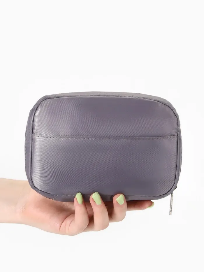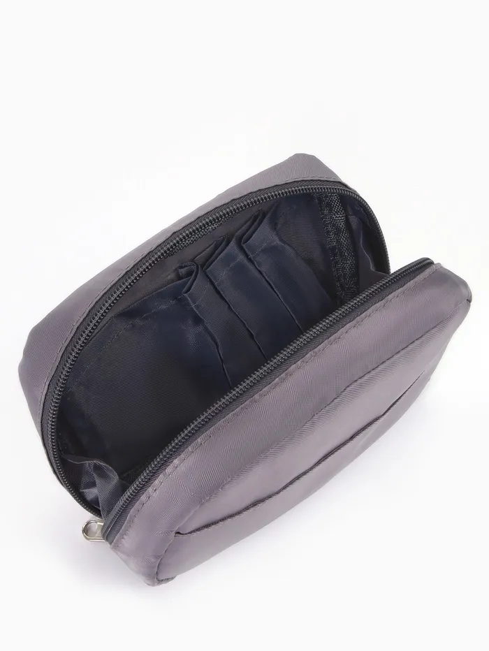 Косметичка дорожная на молнии с карманом, на подкладке, серая — Характеристики