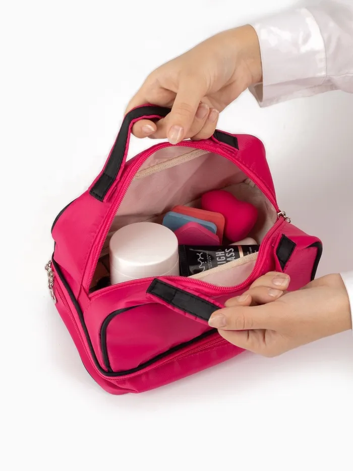 Косметичка - дорожная на молнии, с ручками, с отделами, малиновый — Характеристики