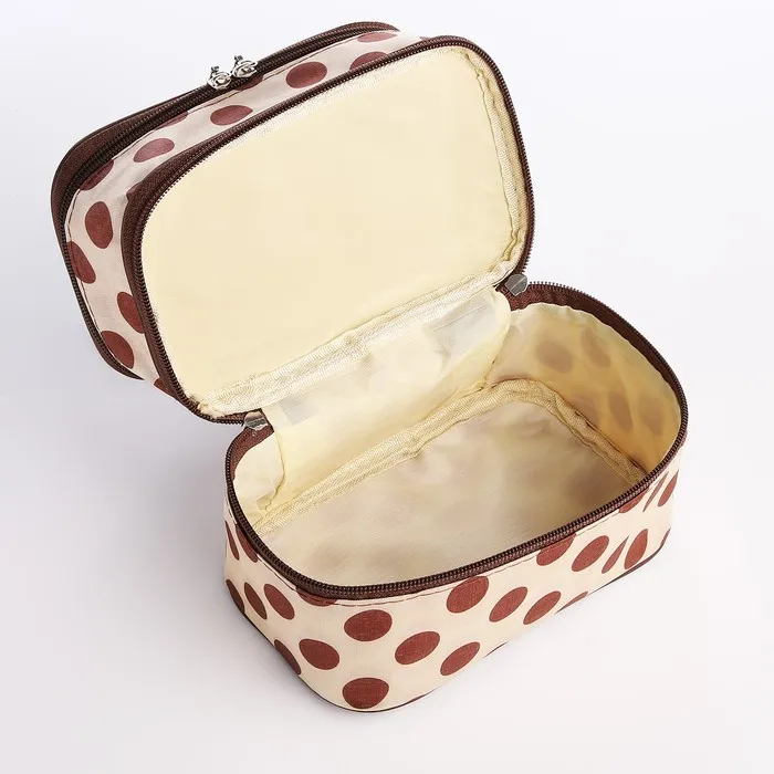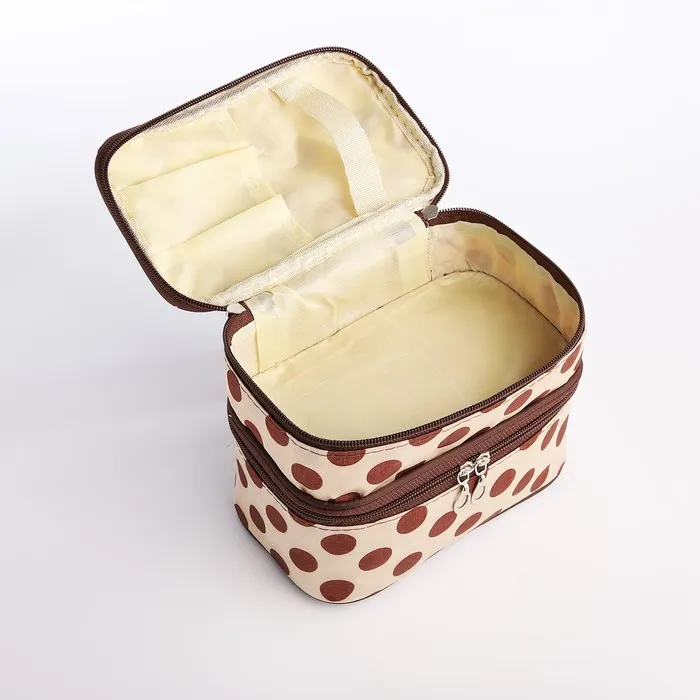 Косметичка дорожная на молнии с ручкой, с 2 отделами, с рисунком, бежевая/коричневая — Характеристики