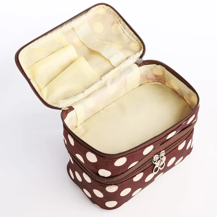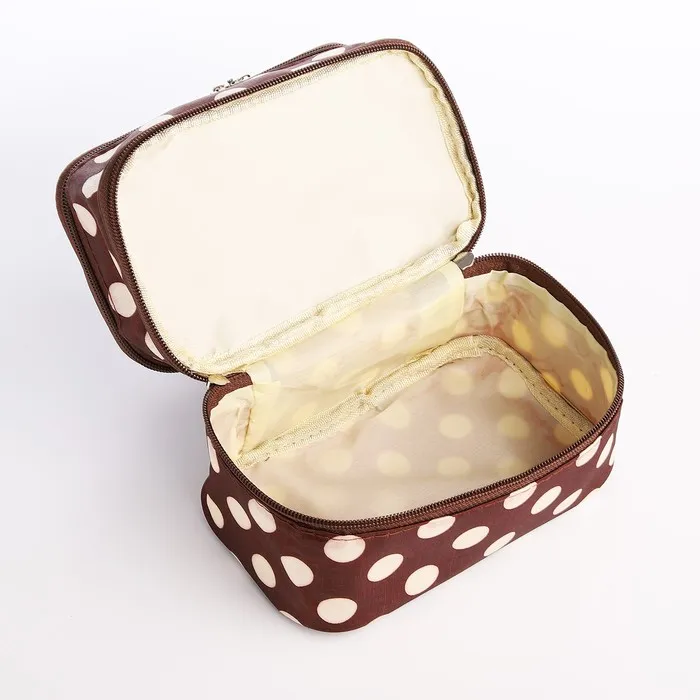 Косметичка дорожная на молнии с ручкой, с 2 отделами, с рисунком, коричневая/бежевая — Характеристики