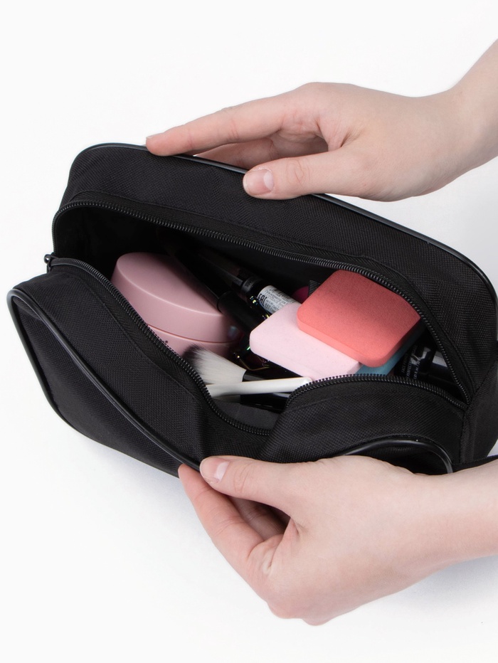 Эта чёрная дорожная косметичка — ваш надёжный спутник в любой поездке. Она создана, чтобы организовать средства для ухода и освободить вас от поисков нужной вещи в сумке или чемодане. Компактный формат и продуманная конструкция делают её идеальным выбором для коротких командировок, выходных за город или ежедневного хранения косметики.