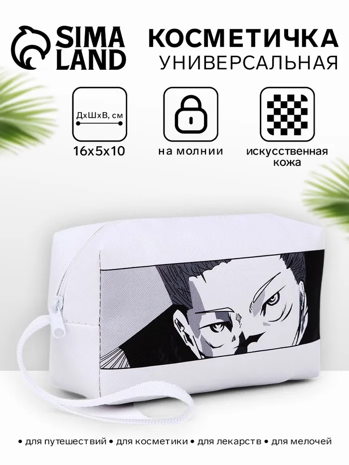 Косметичка дорожная на молнии, с ручкой, с принтом «Аниме» белая — Характеристики