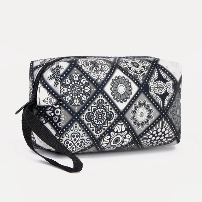 Косметичка дорожная на молнии, с ручкой, с принтом, чёрная