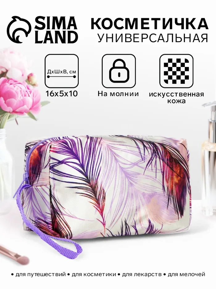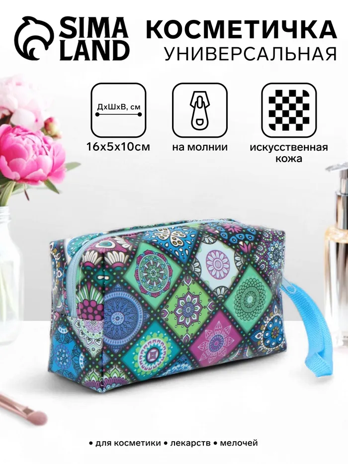 Косметичка дорожная на молнии, с ручкой, с принтом, чёрная — Характеристики