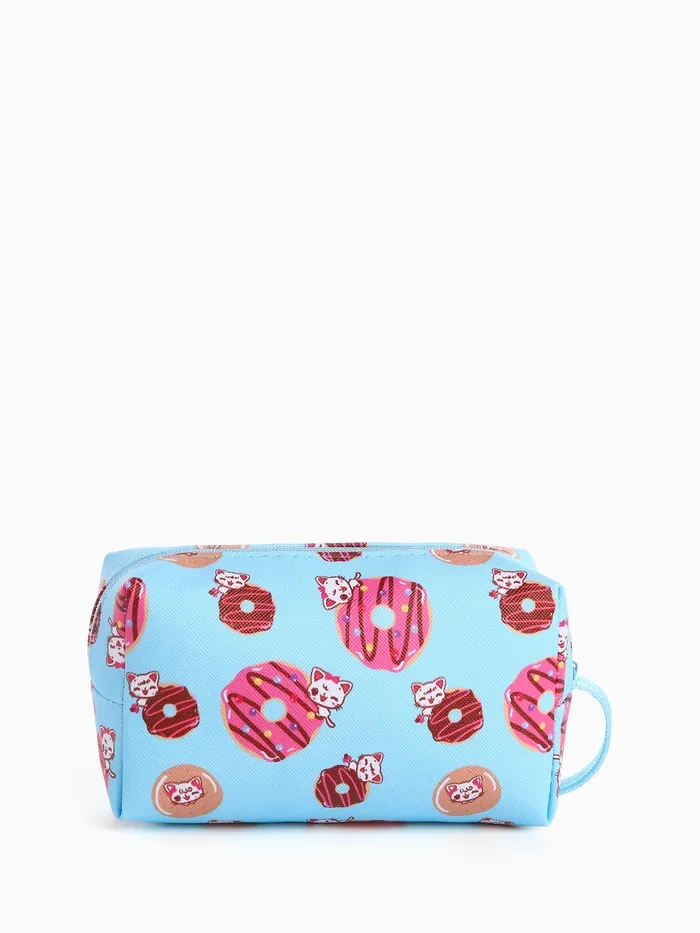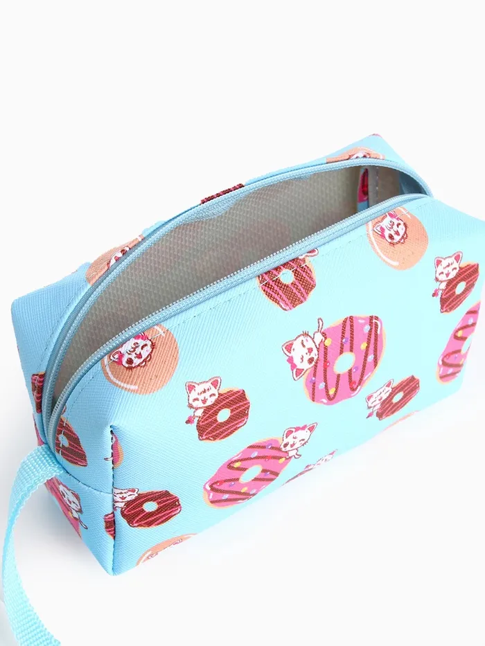 Косметичка дорожная на молнии, с ручкой, с принтом, голубая — Характеристики